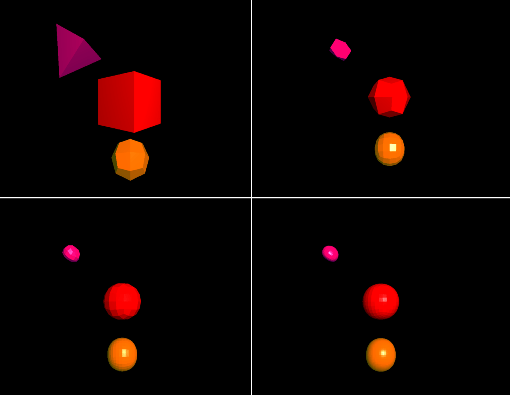 For wire mode implementation, I have changed the content of buffer data to store edge vertices, normals, and indices. I have applied the same flat shading approach for wire mode in advance. For a smooth transition from solid mode to wire mode, I have stored the two modes’ buffer data in different VBOs and VAOs.