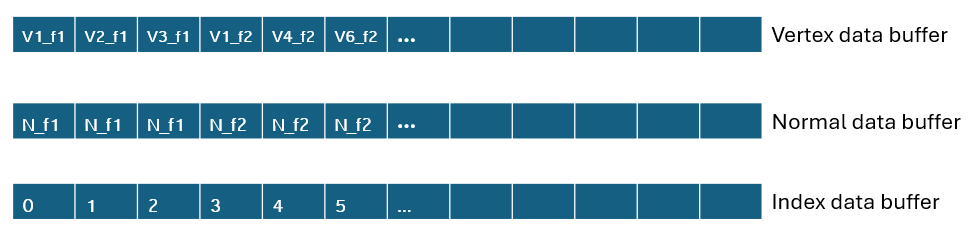 A vertex can be shared by many face, which means a vertex can have multiple normals while implementing flat shading. For these reasons, for each vertex in each face, I have added that vertex to vertexDataBuffer, and face normal to normalDataBuffer while changing the indexDataBuffer.